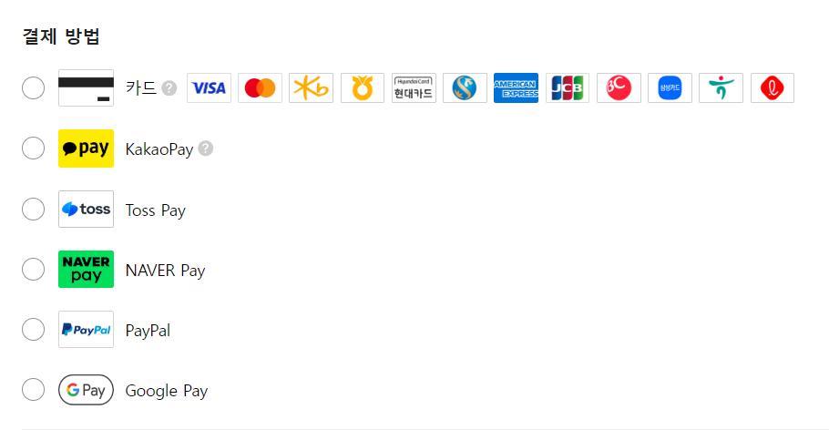 7. 결제 가능 수단